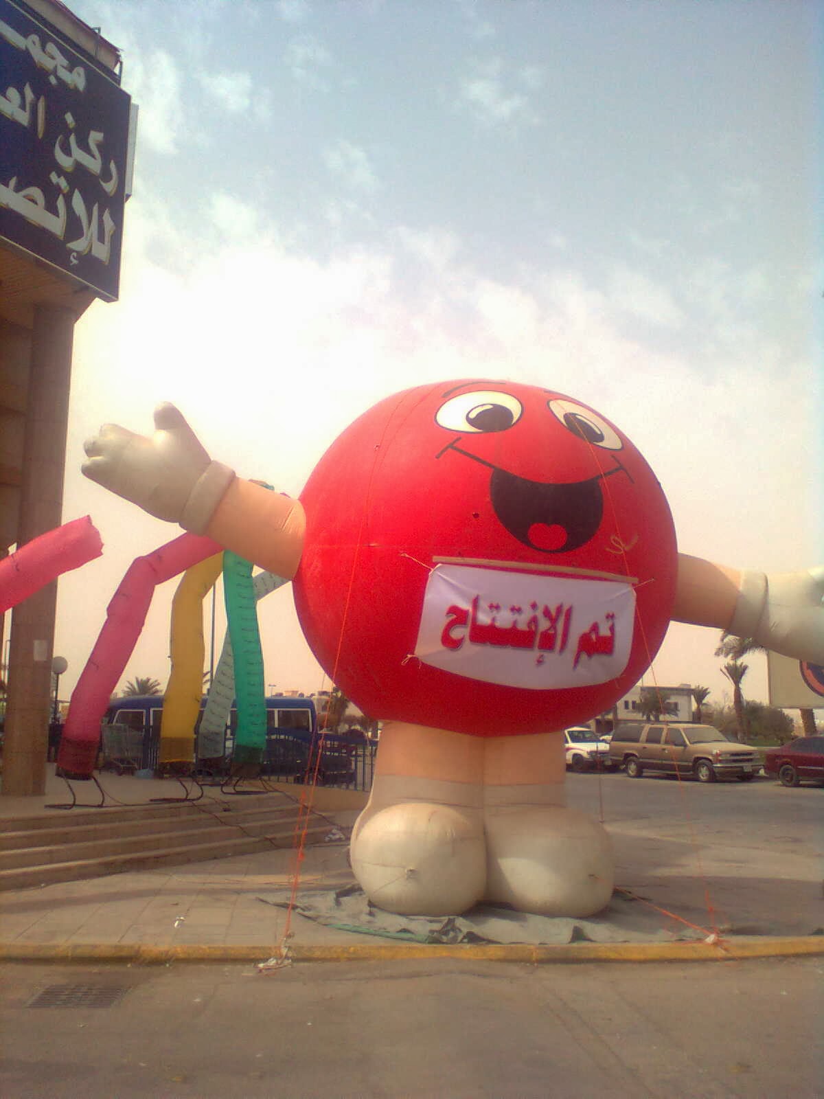 plastics bubbling up, ballooned figure standing around and/or a roving light is
