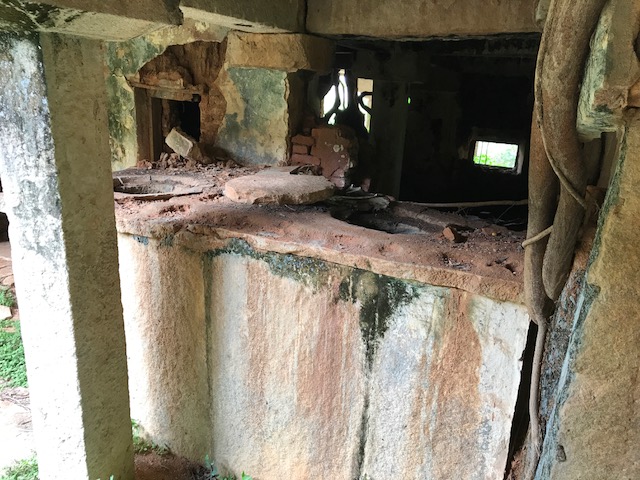 Dangerous, as with neglect over the centuries, large tree roots and branches have grown into the walls and many of the beautifully pillared corridors appear ready to cave in anytime. Several pillars looked solid though some were delicate, with their base exposed, and hence weak; others were just a loose assembly of stones (used in those days for construction) on the top, making the entire pillar look loose and ready to topple! It did cross my mind to keep my helmet on as I tried to parade through!